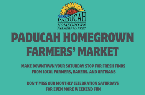 The 2026 season on Saturday, April 18, running 7:30 AM to 1:00 PM. at its regular weekly schedule. Special themed Celebration Saturdays are planned throughout the season, including Fit & Fun, Kid’s Creative, Family Day, and a Fall Festival closing out the season on October 10. Stop by, stock up, and be part of what makes Paducah’s community so vibrant.