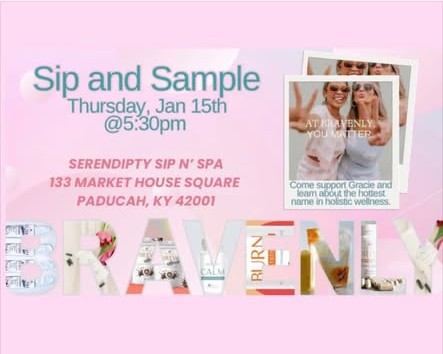 Girls’ night + wellness! Join Serendipity Sip N’ Spa Thursday at 5:30 PM at 133 Market House Square to sip, sample Bravenly products, enjoy mocktails & cocktails, and learn about supplements for the new year, new you. Bring the girls and come shop, sip and hangout and learn about some amazing products!