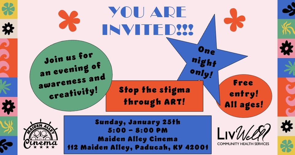LivWell Community Health Services and Maiden Alley Cinema invite you to a special event focused on reducing HIV/AIDS stigma through the power of ART! Join us for an evening of awareness and creativity as we challenge misconceptions and misinformation related to HIV/AIDS. This reception will feature artwork made by local artists, an opportunity to meet and speak with artists, and resources to promote dialog and inspire change.